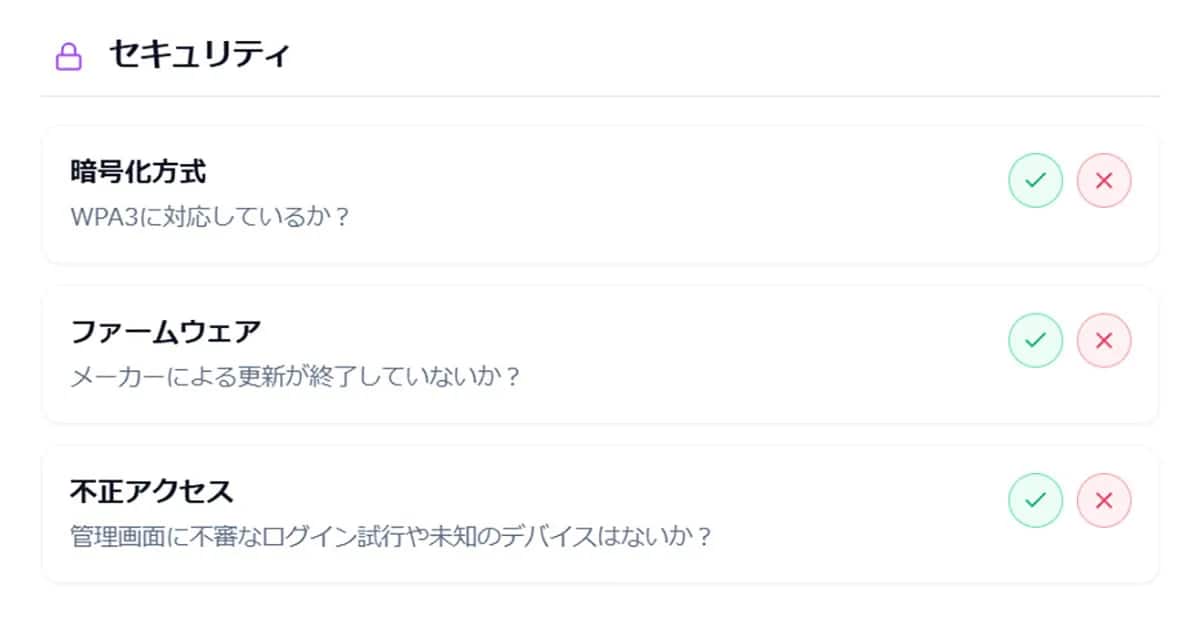 NordVPNによる調査によると、約8割の人が自宅Wi-Fiの保護方法について正しく理解していないことが明らかになりました。家庭用ルーターはハッカーにとって狙いやすい標的であり、侵入されると通信内容の監視や盗聴のリスクがあります。 対策として、プロバイダ提供のルーターの設定をそのままにせず初期パスワードを変更する、最新の暗号化技術「WPA3」対応ルーターを選ぶ、VPNを活用するといった自衛策が重要です。 <出典> 8割超が無防備!あなたのWi-Fiルーターも狙われている?今すぐ確認すべきセキュリティ対策 (スマホライフPLUS) 【まとめ】ルーターは消耗品と割り切ろう Wi-Fiルーターは一度買えば終わりではありません。セキュリティと快適な速度を維持するためには、3〜5年を目安に寿命やサポート状況を確認し、計画的に買い替えることが大切です。 ※記事内における情報は原稿執筆時のものです。店舗により取扱いがない場合や、価格変更および販売終了の可能性もございます。あらかじめご了承ください。